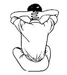 "Embrasser" le Kunlun Le Kunlun est la pro?minence de l'occiput o? se trouve le point Naohu, et de chaque c?t? il y a les deux points Yuzhen. Selon la m?decine traditionnelle chinoise, avec ces points, on peut soigner les maux de t?te, les ?blouissements et la myopie. Avant de faire cet exercice, entrechoquer l?g?rement des dents 20 ? 30 fois et avaler de la salive s'il y en a. Croiser les doigts des mains et placer les paumes contre l'occiput, pousser avec les mains l'occiput en avant en m?me temps r?sister avec la t?te et le cou ? la pouss?e pour neutraliser la force des mains. R?p?ter ces mouvements une dizaine de fois pour contracter et d?contracter les muscles de la t?te et du cou et affecter les points concern?s (Fig. 2).
