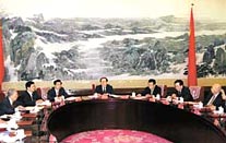 Le pr?sident du Comit? national de la Conf?rence consultative politique du Peuple chinois Li Ruihuan, le vice-pr?sident Hu Jintao et d'autres hauts dirigeants chinois ?taient pr?sents ? cette causerie pr?sid?e par Jiang Zemin, s?cr?taire g?n?ral du Comit? central du PCC.