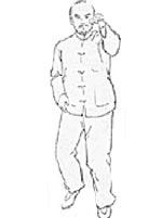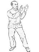 Faire un pas en avant avec le pied droit d?une mani?re agile, d?placer progressivement le centre de gravit? sur le pied droit, soulever le talon gauche tout en maintenant la pointe sur le sol. En m?me temps, lever la main droite et l?avancer comme pour saisir quelque chose, lorsqu?elle arrive ? la hauteur de la bouche, rassembler les cinq doigts, le poignet naturellement fl?chi. Retirer en m?me temps la main gauche ? c?t? du flanc.