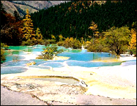 Mit ihren dichten W?ldern, den Wasserf?llen und zahlreichen Teichen ist die Schlucht Huanglong und ihre Umgebung ein lohnendes Ziel für jeden Naturfreund. In den W?ldern leben Gro?e Pandas, Rindergemsen, Fasane und andere seltene Tiere.