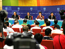 Erste Pressekonferenz des chinesischen Olympiateams in Athen