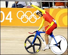 Die chinesische Radsportlerin Jiang Yonghua hat im 500m-Zeitlauf des olympischen Fahrrad-Wettbewerbs in Athen eine Silbermedaille gewonnen.