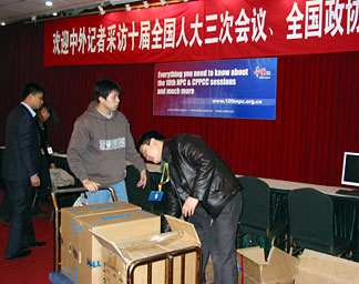 Das Pressezentrum der 3. Tagung des 10. Nationalen Volkskongresses (NVK) und des 10. Landeskomitees der Politischen Konsultativkonferenz des Chinesischen Volkes (PKKCV) ist kürzlich in Betrieb genommen. In der Chinesischen Kongresshalle für Wissenschaft und Technik gelegen, wird das Pressezentrum w?hrend der 3. Tagung des 10. NVK und des 10. Landeskomitees der PKKCV in- und ausl?ndischen Journalisten relevante Informationen anbieten. Die staatliche Nachrichten-Webseite China.org.cn wird im Pressezentrum erforderliche Dienstleistungen zur Verfügung stellen.