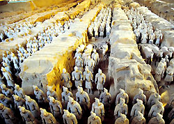 Die Terrakotta-Armee des chinesischen Kaisers Qinshihuang ist zum ersten Mal in Deutschland zu sehen. Einer Gruppe Leipziger Unternehmer ist nach langen Verhandlungen mit der chinesischen Regierung gelungen, die über 2200 Jahre alten Figuren nach Markkleeberg nahe Leipzig zu holen.