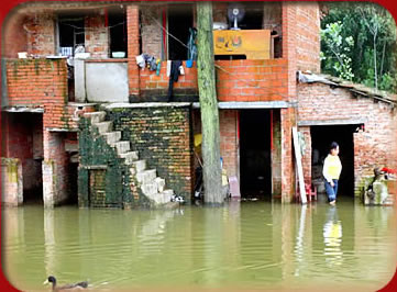 entlang des Yangtse, des Gelben Flusses und des Huaihe-Flusses überschwemmt.