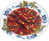 3. Die ged?mpften Rippchen aus dem Topf herausnehmen, den Ingwer, Porree und Sternanis entfernen, die Rippchen in einen anderen Topf mit Br?he legen und ?ber starker Flamme schmoren lassen. Wenn die Br?he auf etwa 1/3 reduziert ist, das restliche St?rkemehl zugeben und gut verr?hren.