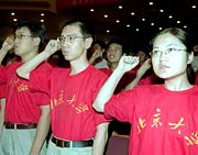 Am 28. Juni traten 810 Lehrer und Studenten der Peking-Universit?t in die KPCh ein. |