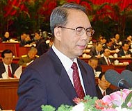 Chinas Top-Planer h?lt auf der 2. Plenarsitzung der 1. Tagung des 10. NVK den Bericht seiner Kommission.