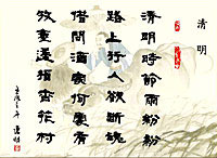 Das Qingming (Helles Licht)-Fest, auch Totenfest genannt, ist einer der 24 Jahreseinteilungstage des chinesischen Mondkalenders am 4. oder 5. April. W?hrend des Qingming-Festes erh?ht sich die Temperatur, und es regnet oft,