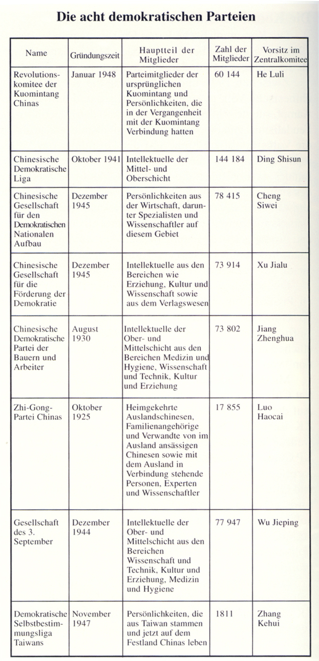 Neben der Kommunistischen Partei Chinas bestehen in China noch weitere
