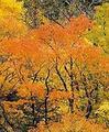 秋風が吹くころになると、谷間の両側の密林に並ぶカエデやモミジ、シラカバ、フジマツなどの葉が霜に濡れるたびに美しく鮮やかな紅色、黃金色に変わっていく。山々は紅葉に彩られ、流水も紅葉に染まり、道も紅葉に覆われ、ミヤロの秋は一気に火炎に包まれる。雪を頂いた山々、溫泉、森林、紅葉、そしてチベット?チャン族の文化が織りなす新奇で、夢幻な回廊がどこまでも広がる。
