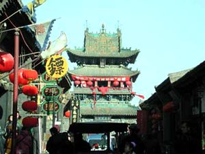 平遙は山西省中部にある小さな町で、西周の宣王(紀元前827~前782年)の頃から築造がはじまり、2700年余りの歴史がある。いまでも明、清の時代の町の姿が完全な形で保存されており、中國の漢民族居住地域に現存する最も完ぺきな形の古城でもある。城壁は長さ約6キロ、上に凸凹狀の低い壁が3000ぐらいあり、望樓が72ぐらい築かれ、それぞれ孔子の教え子と賢人の數を象徴している。昔、町の南東隅には魁星閣があり、文運をつかさどる魁星が祭られていた。城壁に囲まれた町の中では、「市樓」を中心に、大通り四本、小さな道八本、曲がりくねった小さな露地が72本縦橫に交錯している。町の中にある3797軒の古い民家