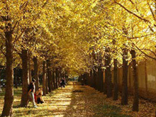 晩秋を迎え、北京市?釣魚臺國賓館近くのイチョウ並木も黃色に変わった。市民にとっては、秋のお決まりの撮影スポットだ。
