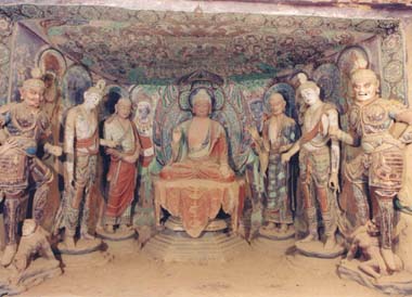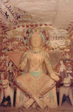 莫高窟(通稱千仏洞)は西暦366年に造営が始まって以來、北涼、北魏、北周、隋、唐、宋、回鶻、西夏、元など、十以上の王朝や地方政権の下で拡張されていった。現存する洞窟は計492、彩色塑像は二千體以上、壁畫の総面積は四萬五千平方?を超える。莫高窟は壁畫の內容の豊かさで知られ、仏菩薩像、仏伝故事畫、経変畫、神話を題材にした絵畫、各種の裝飾図案などが多く見られる。