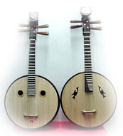 撥弦楽器。漢の武帝の頃に、箏、築などの楽器を參考にして製作したもの。阮は共鳴箱が円形で、さおがまっすぐで、4本の弦、12の柱位があり、柱が高低の異なった4弦の間に立ち、4弦を共用する。このような構(gòu)造を見ると、中國の平均律の使用はその頃から始まったことが分かる。唐代になって阮は13の柱位となり、唐の武后則天の頃、阮咸と改名し、近代においては阮と稱された。一連の改造を過て、現(xiàn)在は24の柱のものとなり、音量が大きくなり、音色も改善された。近年、さらに2層の共鳴箱をもつ中阮も開発された。このような中阮は音色がソフトな特徴を持つと同時に、音量も大きくなっている。器楽合奏や伴奏で、阮は重要な撥弦楽器の一つである。よく使われているのは大阮と中阮の二種類である。
