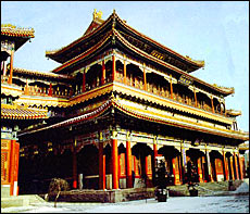雍和宮は清代康煕三十三年(1694)に建立された。北京地區(qū)で規(guī)模最大、最も完全な形で殘存するラマ教(チベット仏教)黃教の寺院。廟は南に向かって立ち、南から北へと牌樓院、昭泰門、天王殿、雍和宮殿、永佑殿、法輪殿、萬福閣などが並んでいる。