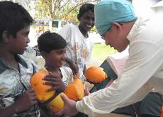 スマトラ沖地震による津波で被災したスリランカ南部沿岸のシーニガマで6日、現地の子どもたち數人が中國國際衛生醫療救援チームのキャンプ地を訪れ、中國人醫師に感謝の気持ちを込めてヤシの実を贈った。