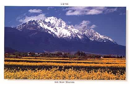 「玉竜雪山は天下一」という詩句はオーバーな表現ではなく、この山は確かに造物主が作った山と川の傑作であると言える。そこには北緯最南端の近代の海洋性氷河があり、一年じゅう氷と雪が融けることのない主峰は南から北へと30余キロもえんえんと伸び、空に舞い上がった竜のように見える。伝えられるところによると、玉竜雪山の標高4600メートルの地帯は年じゅう融けることのない積雪があり、それは硬く、きらきらと光り、大昔から人類はそれに觸れたことはなく、「大昔からの雪」と言われている。