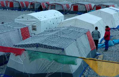 中日女子登山隊11人と測量隊6人は27日、海抜5200メートルにある珠穆朗瑪(チョモランマ)ベースキャンプに到著し、21日に到著していた先遣隊と合流した。ベースキャンプでは27日夜、強風が吹き荒れ、気溫が低下したが、現在のところ隊員の體調はいずれも良好という。
