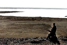 寫真(左):昨年9月から湖水面積が回復しつつある額済納(エチナ)地區のオアシス?居延海