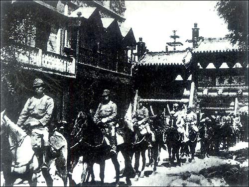 1937年9月13日、大同陥落。寫真は、大同城內に入った日本軍騎兵隊