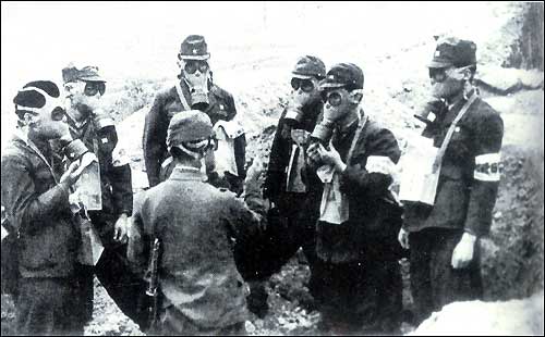 1938年5月、山東省で毒ガス戦の準備にあたる日本軍