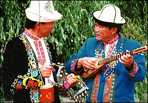 文化 キルギス族は歌と踴りを得意とする民族で、悠久な歴史文化を持ち、著名な長編の史詩『瑪納斯(マナス)』は中國の三大史詩の一つと見なされている。女性は刺繍や編物が上手で、彼女たちの手になるいろとりどりの壁掛けは非常に有名。