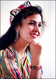 服飾 男子は「袷袢(チアパン)」という向かい襟式の長衣、女子は「艾徳萊斯(アイデェライス)」というシルクのワンピースを著、頭に花模様の入った小さな帽子をかぶるというウイグル族の民族の服裝を著ているが、時代の発展につれ、今風のファッションもウイグル族の人たちに好まれるようになった。