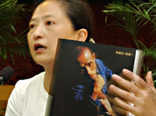 寫真:自身の編著「泣血控訴」を説明する李暁方氏