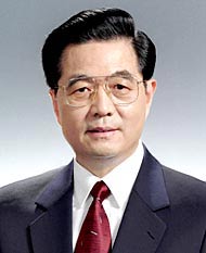 胡錦濤 男性、漢民族。1942年12月生まれ、安徽省績渓県出身。1964年4月、中國共産黨に入黨。1965年7月就職、清華大學水利工程部(河川ダム発電所専攻)卒業、エンジニア。