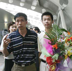 После участия в соревнованиях на Афинской Олимпиаде часть делегации китайских спортсменов 18 августа утром вернулась в Пекин.