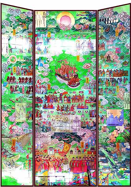 Художники: Фэн Цзяньцинь, Хуан Пэйчжоу, У Леянь, Чжан Чэнчжи Панно
