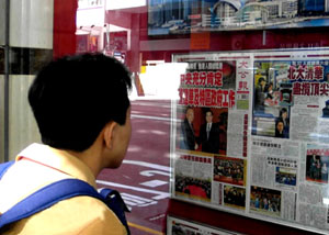 На снимке: сянганец читает материал о сессии ВСНП в газете "Дагун бао".