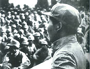 Председатель Реввоенсовета ЦК КПК Мао Цзэдун выступает с речью ?О затяжной войне? в Антияпонском военно-политическом университете в Яньани в 1938 году