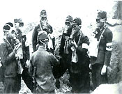 Японские солдаты готовятся к газовой атаке в районе Тяньцзинь-Пукоуской железной дороги, май 1938 г.