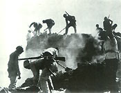 Солдаты 8-й армии преодолевают городскую стену в ходе контрнаступления в тылу врага в Северном Китае