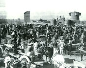 Население г. Хэцзяня (центральная провинция Хэбэй) помогает бойцам китайской армии в перевозке трофеев