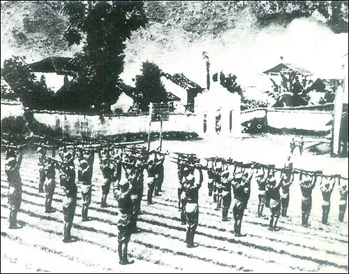 В октябре 1943 года Китайский экспедиционный корпус второй раз вступил на территорию Бирмы. На снимке: строевая подготовка в Синкае, провинция Юньнань.