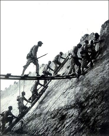 Солдаты 8-й армии преодолевают городскую стену в ходе контрнаступления в тылу врага в Северном Китае.