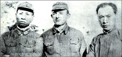 Лю Шаоци (слева) и Чэнь И (справа) с австрийским доктором в северной Цзянсу в 1941 г.