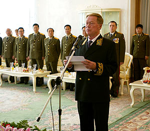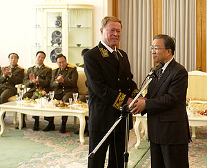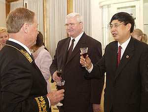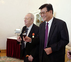 Сегодня, 6 мая, в посольстве России в Китае состоялся прием по случаю 60-летия Победы в Великой Отечественной войне. Заместитель министра иностранных дел Дай Бинго, председатель Китайского народного общества дружбы с заграницей Чэнь Хаосу, замначальник Генерального штаба НОАК Сюн Гуанкай, помощник министра иностранных дел Ли Хуэй, исполнительный секретарь ШОС Чжан Дэгуан, и другие социальные лица приняли участие в церемонии.