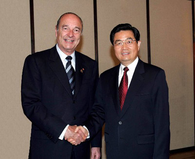 9 мая в столице России состоялась встреча председателя КНР Ху Цзиньтао и президента Франции Жака Ширака. Главы государств высказали общее мнение о необходимости всестороннего укрепления сотрудничества и продвижения стратегического партнерства между двумя странами.