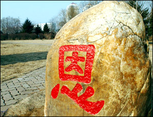 На фото: памятник в парке ?Лунвань? на о. Хулудао, построенный на пожертвования вернувшихся на родину японцев.