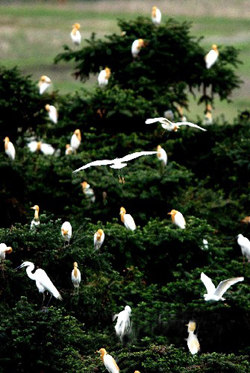 В последние дни расположенная на берегу оз. Поянху деревня Чжанъян волости Губу уезда Юйгань провинции Цзянси встречает особых гостей – белых цапель. С 1998 года местные крестьяне стали уделять большое внимание охране окружающей среды. С каждым годом увеличивается площадь лесов что привлекает стаи белых цапель. Теперь белые цапли – неотъемлемый элемент чжанъянского пейзажа
