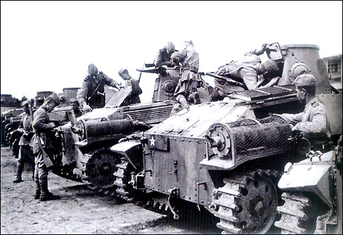 Захваченные советскими солдатами японские танки после капитуляции Квантунской армии. (Фото из фонда РИА ?Новости?)