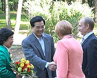 В свою очередь, Ху Цзиньтао поблагодарил "радушных хозяев за приглашение приехать в Россию".