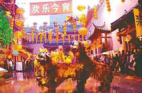 На праздник Юаньсяо в дневное время во многих местах устраиваются различные фольклорные представления: танец с фонарями в виде огненного дракона, танец львов, представления на ходулях, танец “лодки на суше”, танец янгэ, представления “тайпингу” (своего рода тамбурина).