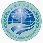 Эмблема выполнена в синем и зеленом цветах, что символизирует основную цель ШОС -- мир, дружбу, прогресс и развитие.