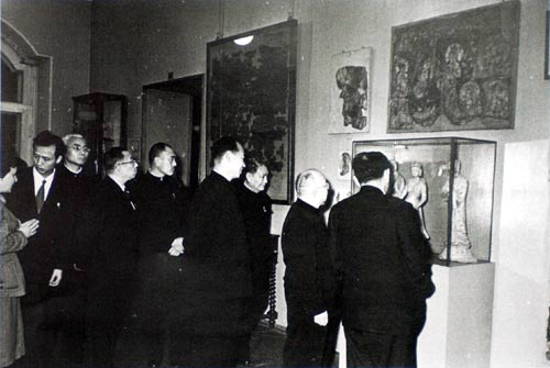 Члены делегации КНР осматривают экспонаты в зале китайского искусства Государственного Эрмитажа. Ленинград, 1956 г.