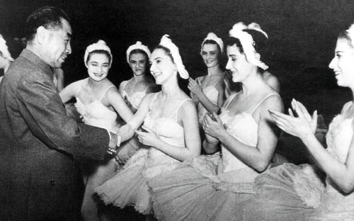 Премьер Госсовета КНР Чжоу Эньлай благодарит исполнителей балета《Лебединое озеро》в Большом театре СССР. Москва, январь 1957 г.